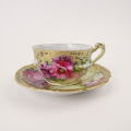 このカップ&ソーサーは、金彩の装飾の状態もよく大きなバラの色合い、絵付けもきれいな美しい作品です。